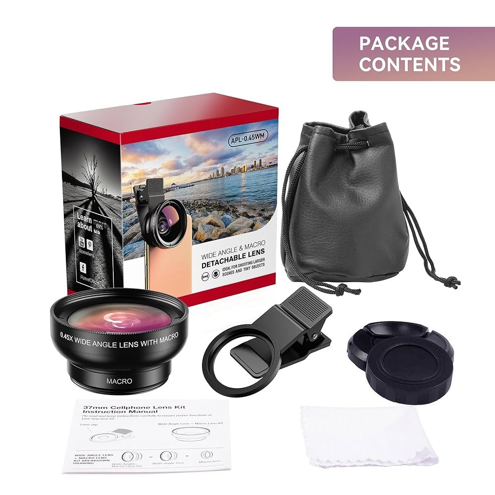 • Apexel 10 in 1 Lens Kit – Variety of lenses including fisheye