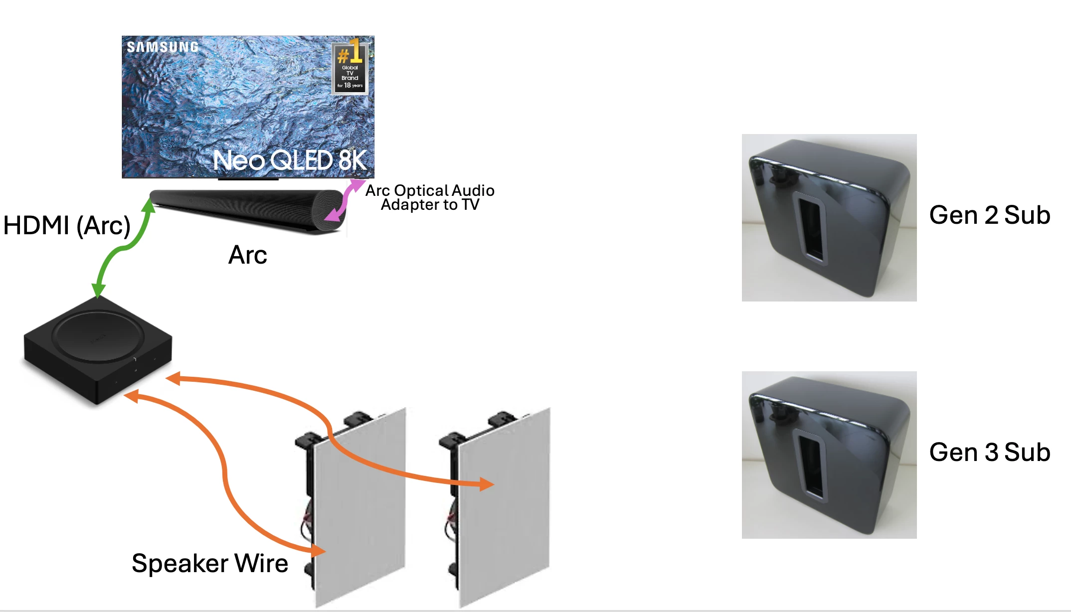 - Subwoofers can be wired or wireless for flexible placement
